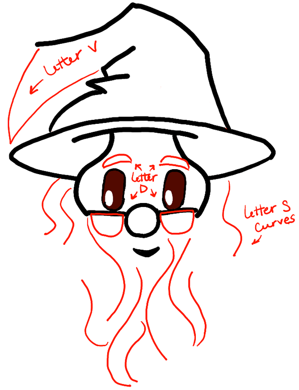 – Draw letter ‘S’ curves in the beard.
