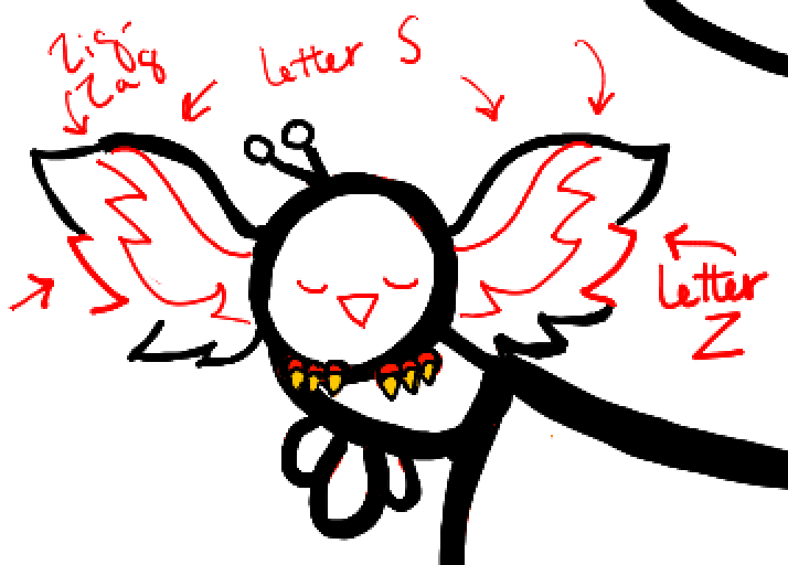– Draw letter ‘s’ curves for the wings.
