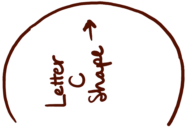 – Draw a sideways letter ‘C’ shape.