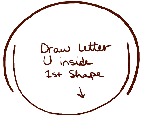 – Draw a letter ‘u’ shape inside the 1st shape.