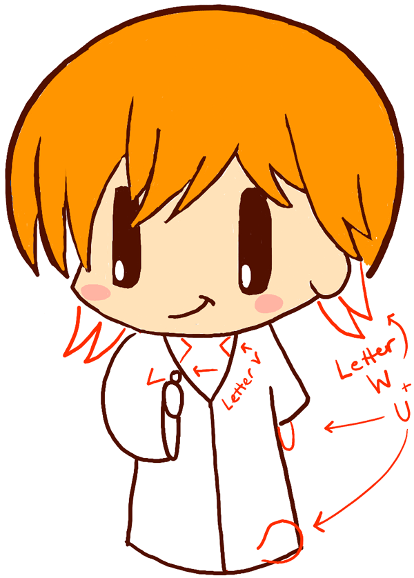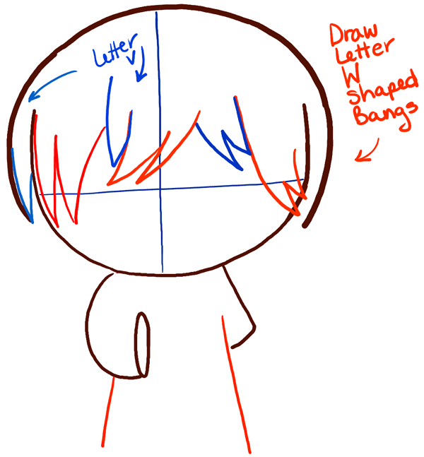 – Draw letter ‘W’ & ‘V’ shaped hairs.