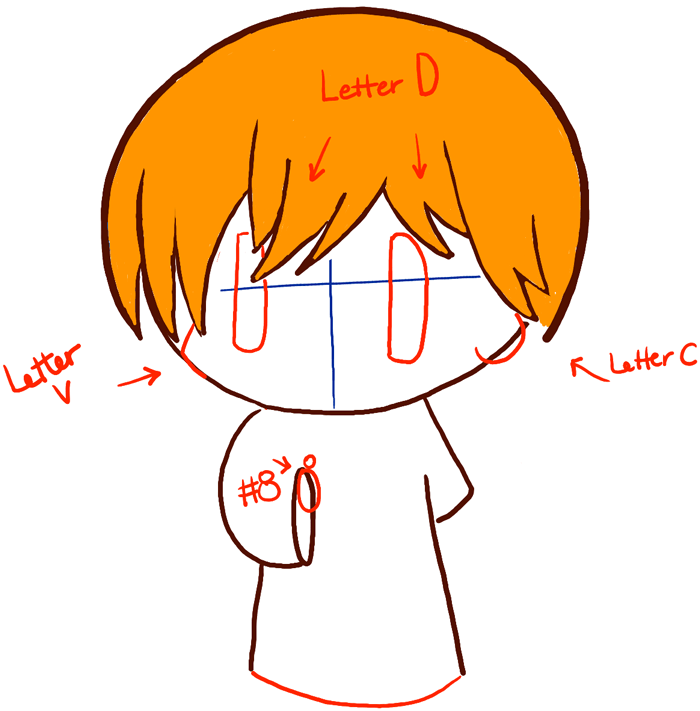 – Draw letter ‘D’ shaped eyes.