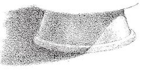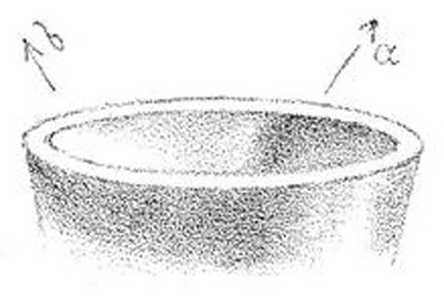The lip and inside of the neck are shown enlarged. Within, as we might expect, the point b, immediately opposite the light, will be brightest. The shadow thrown by the rim should be clearly drawn. Its darkest portion will be found nearest the edge of this shadow at a, for the other part is lit up by reflected light. (This gives the shading of the inside of hollow hemispheres, such as bowls.) In showing such minute detail it will be found advisable to use smaller stumps. The darkest portions may be inserted with the crayon.