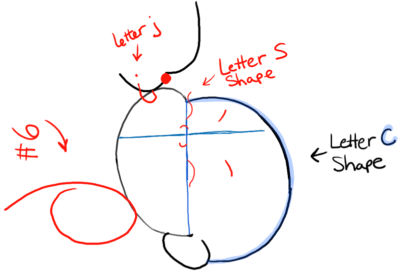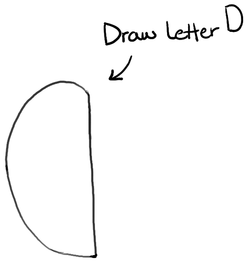 - Draw a sideways letter ‘C’ shape at the bottom.