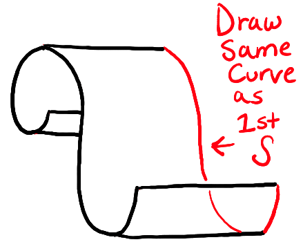 Draw a letter ‘S’ like shape that is backwards and a bit slanted.