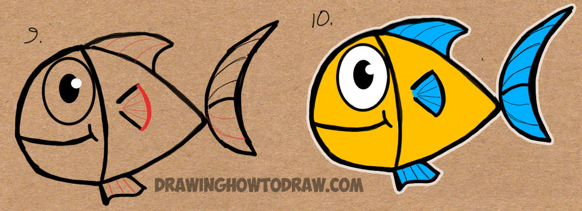 Learn how to draw cartoon fish from the word fish with the following simple step by step drawing instructions. This is an easy-to-follow tutorial that kids of all ages will find fun to follow.