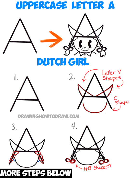Technorati Tags: dutch girl, how to draw a dutch girl, drawing girls, cartoon girl, cartoon girls, uppercase letter A, letter drawings