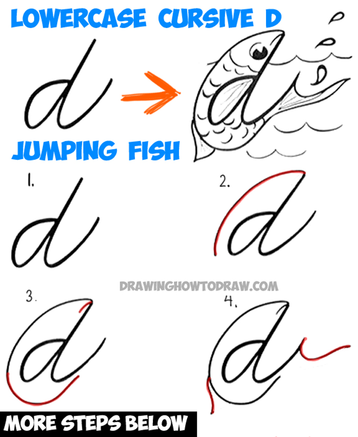 How to Draw Cartoon Jumping Fish from a Cursive Lowercase Letter d Shape – Tutorial for Kids