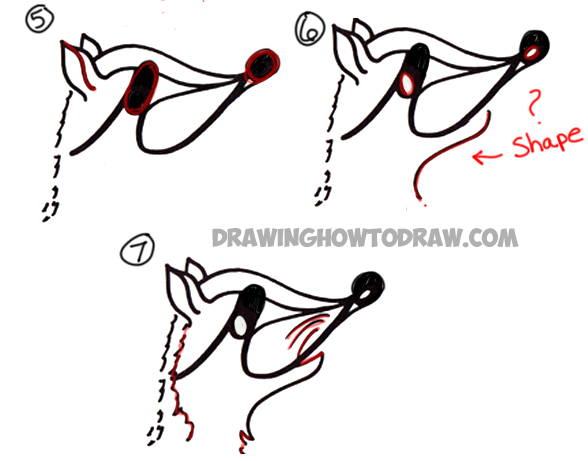 (Step 6) Draw oval highlight in eye and nose. Draw ?-like shape for the chin.