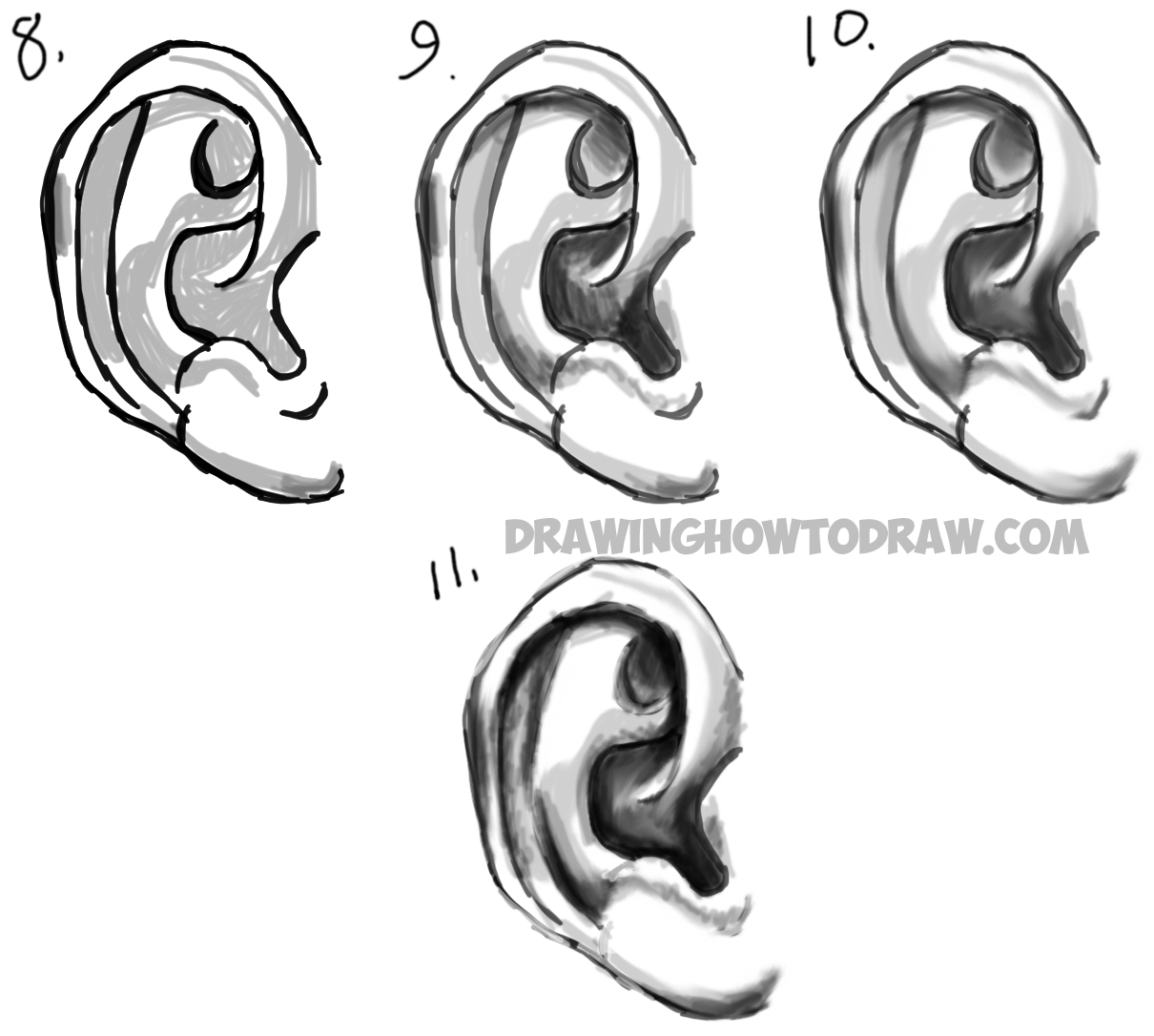 Learn How to Draw Ears and How to Shade Them : Drawing and Shading Ears Tutorial