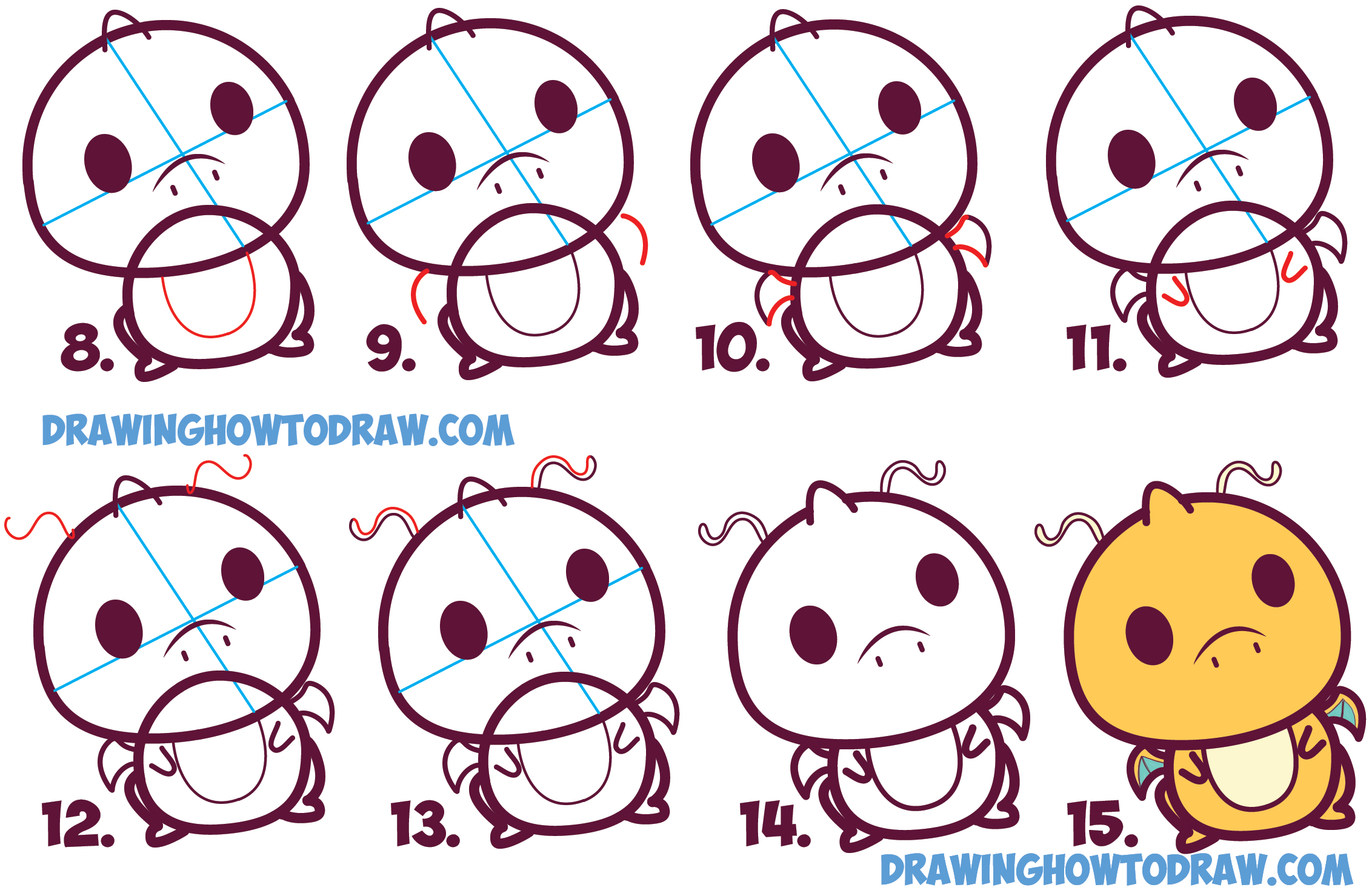 Learn How to Draw Cute Dragonite (Chibi / Kawaii) from Pokemon Simple Steps Drawing Tutorial for Kids