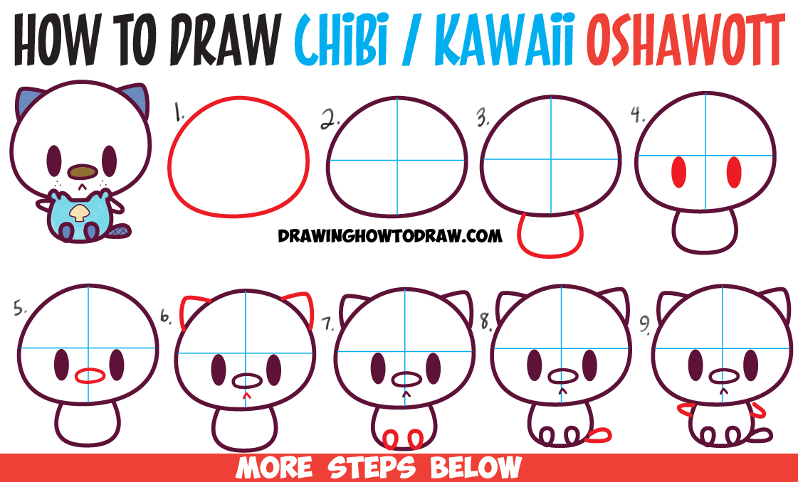 Learn How to Draw Baby Kawaii Chibi Oshawott from Pokemon in Simple Steps Drawing Lesson