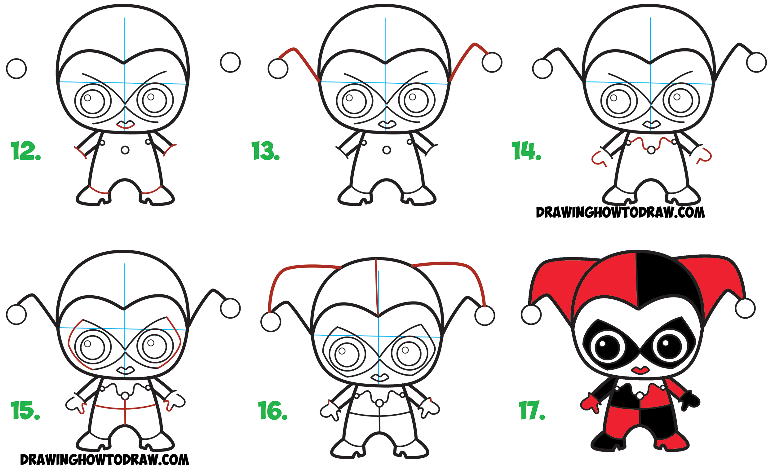 Learn How to Draw Cute Chibi / Kawaii Harley Quinn from DC Comics in SimpleĀ Steps Drawing LessonĀ for Kids & Beginners