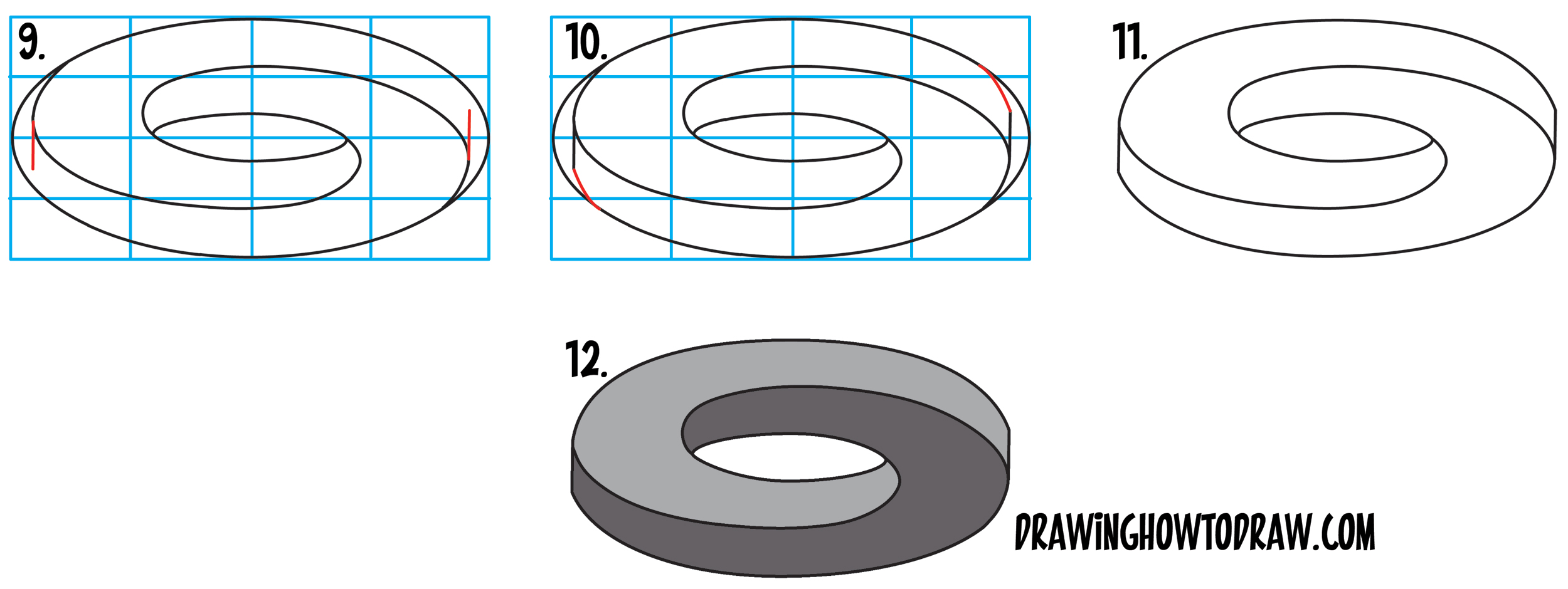 Learn How to Draw an Impossible Oval / Mobius Strip / Möbius Strips in Simple Steps Drawing Lesson for Beginners