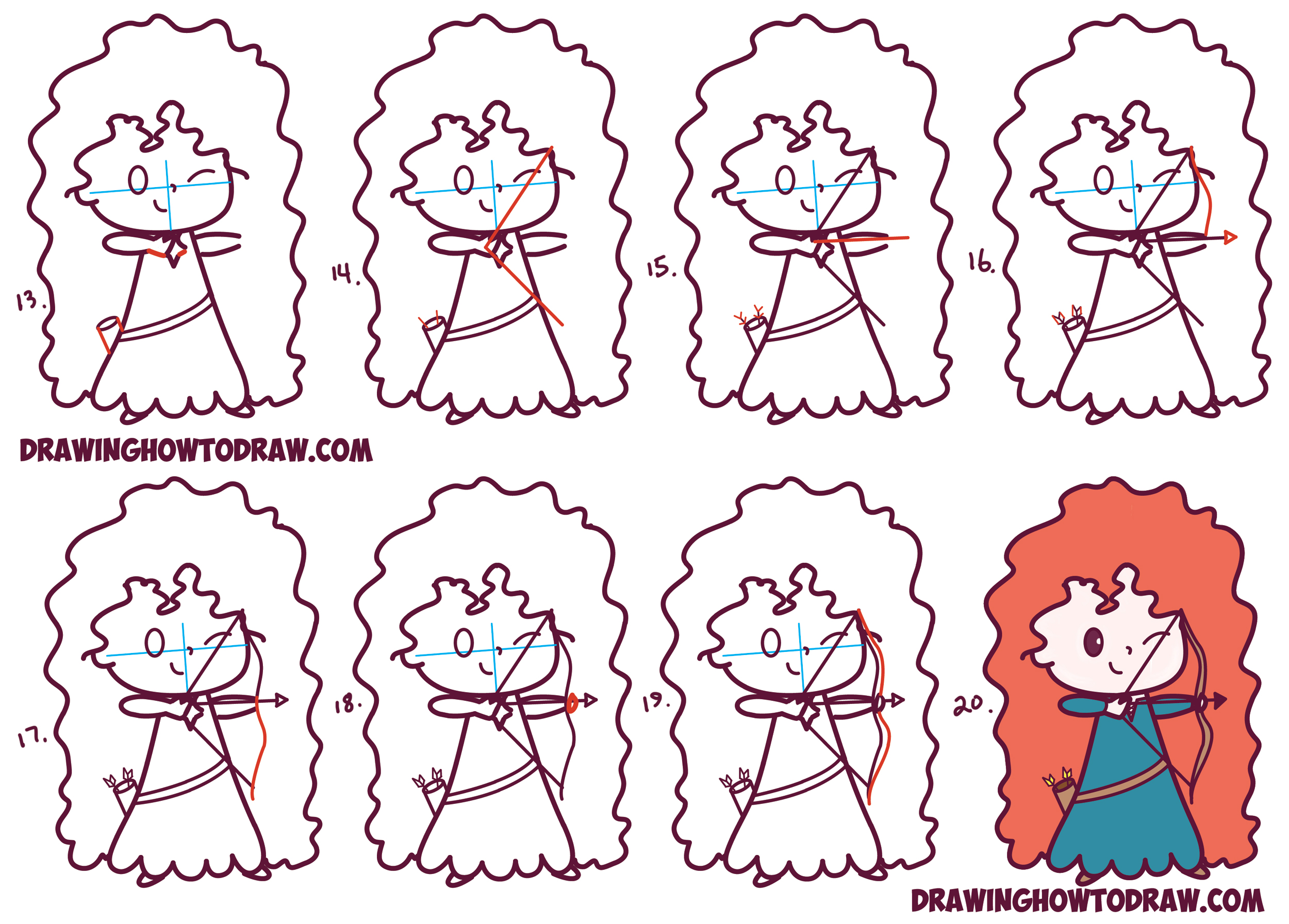 Learn How to Draw Cute Kawaii Chibi Merida from Disney Pixar’s Brave in Simple Steps Drawing Lesson for Beginners