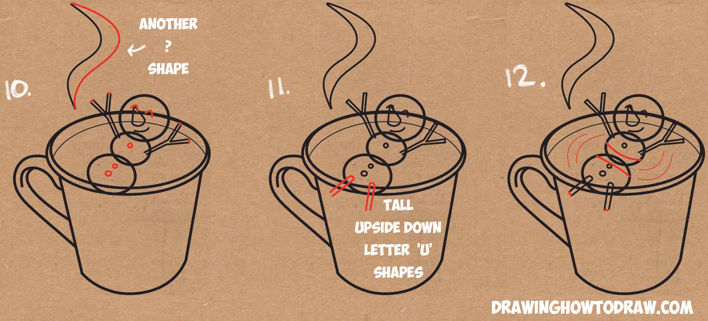 Learn How to Draw a Snowman Swimming in a Hot Cup of Cocoa Simple Steps Drawing Lesson for Beginners for Winter and Snowy Weather