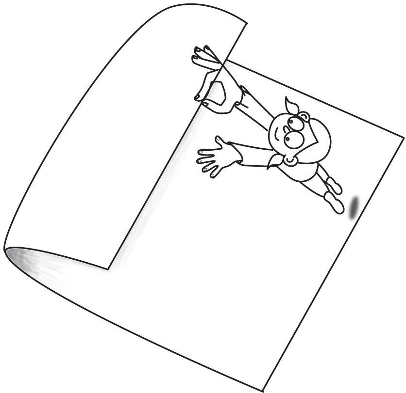 Now roll / curve the paper over and match up the top of the right hand with the bottom of the right hand. It will look like a 3-dimensional cartoon person is hanging off of your paper! Cool…isn’t it?!!!