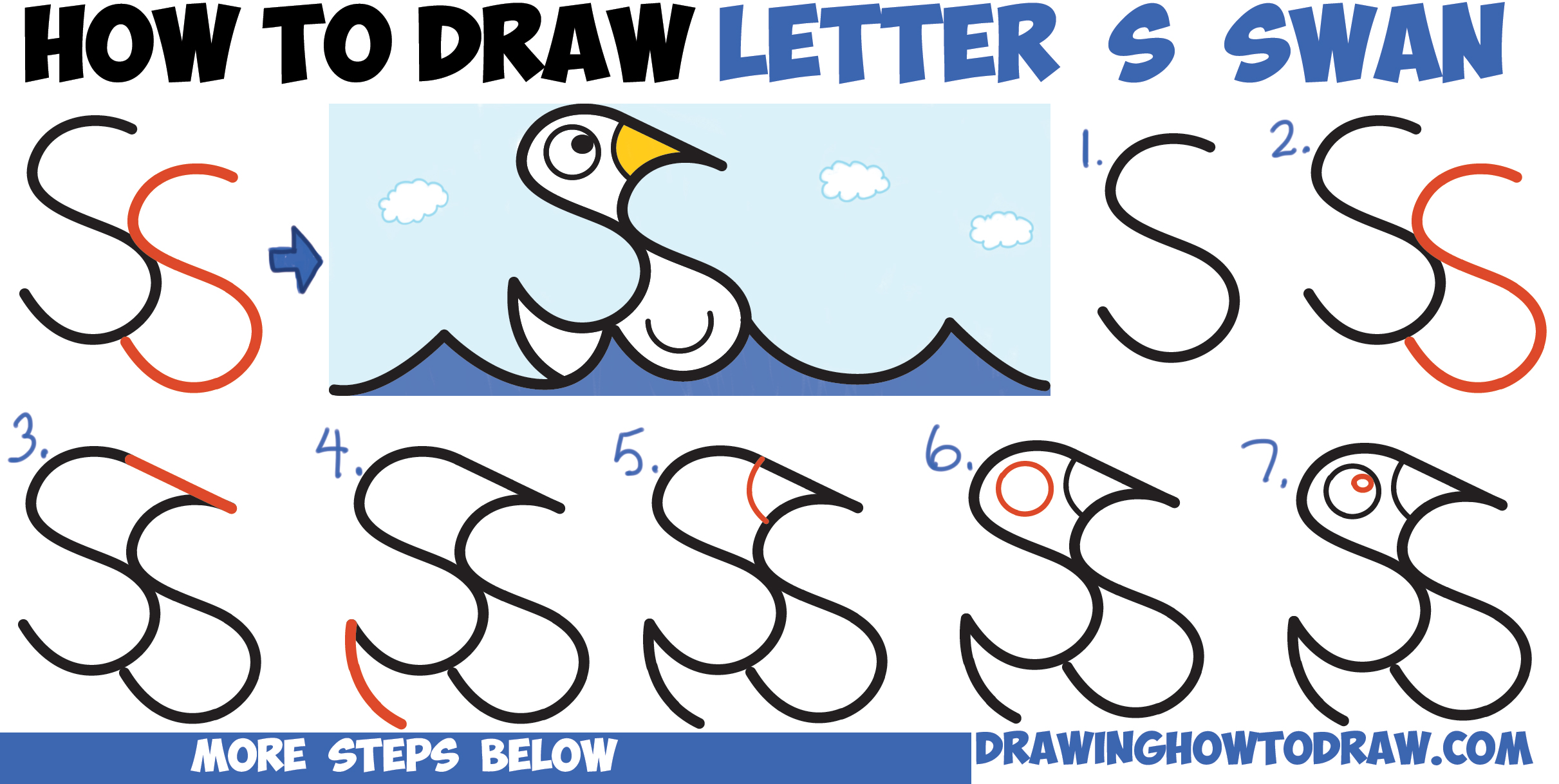 Today I’ll show you how to draw letter a cartoon swan from two letter “S” shapes. This is a very easy step by step drawing tutorial for kids of all ages. It is a great drawing lesson to go along with uppercase or lowercase letter “S” handwriting lessons. Have fun and Happy Drawing!