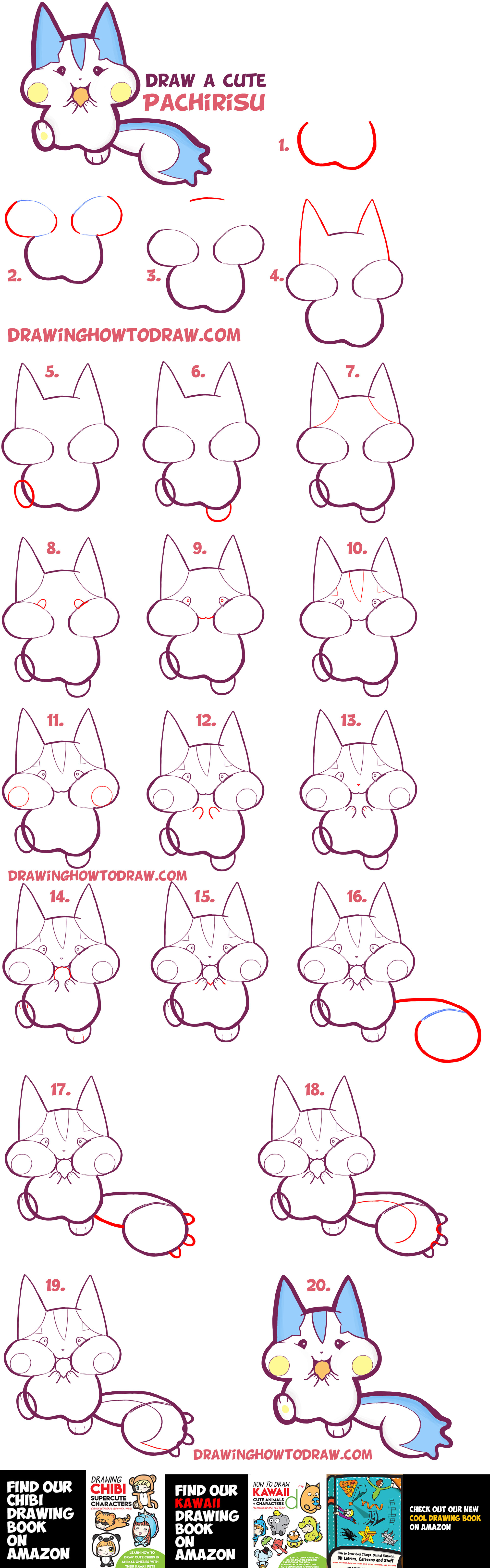 Learn How to Draw Kawaii / Chibi Pachirisu Pokemon with Simple Steps Drawing Lesson for Kids & Beginners