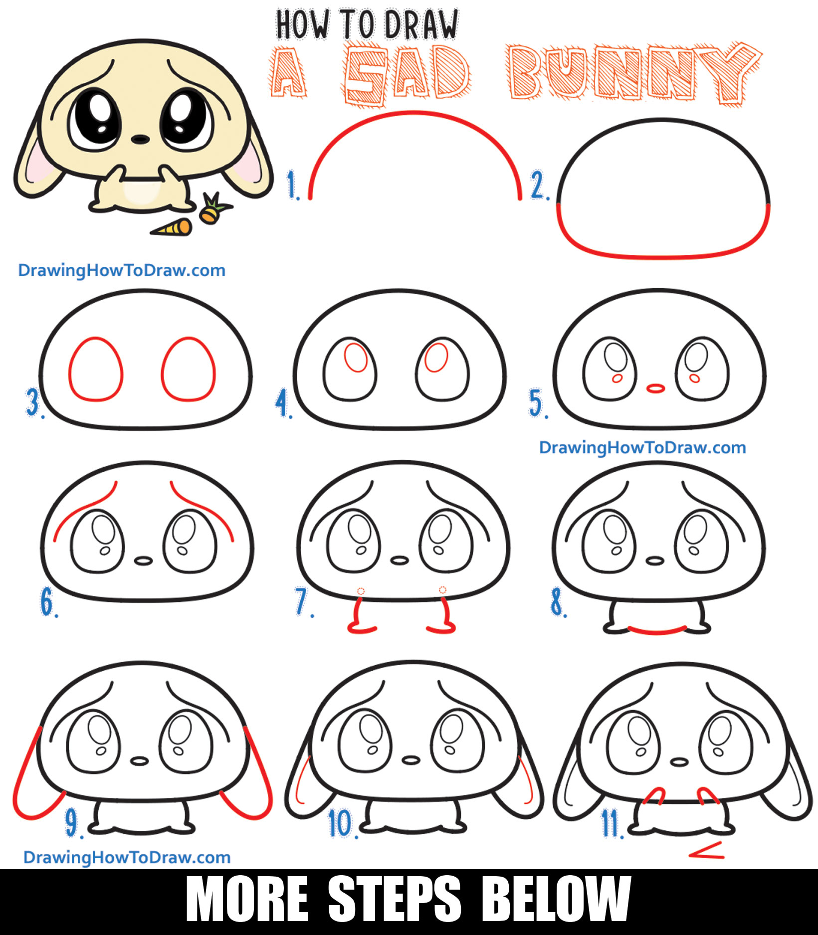 Today I’ll show you how to draw a cute, baby bunny rabbit who is scared and sad. It is a simple, step by step drawing lesson, that is easy to follow along with. Have fun and Happy Drawing!