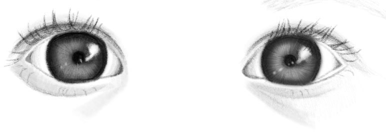 Draw lines radiating out from the pupil. Shade from the inner and outer eye, toward the iris.