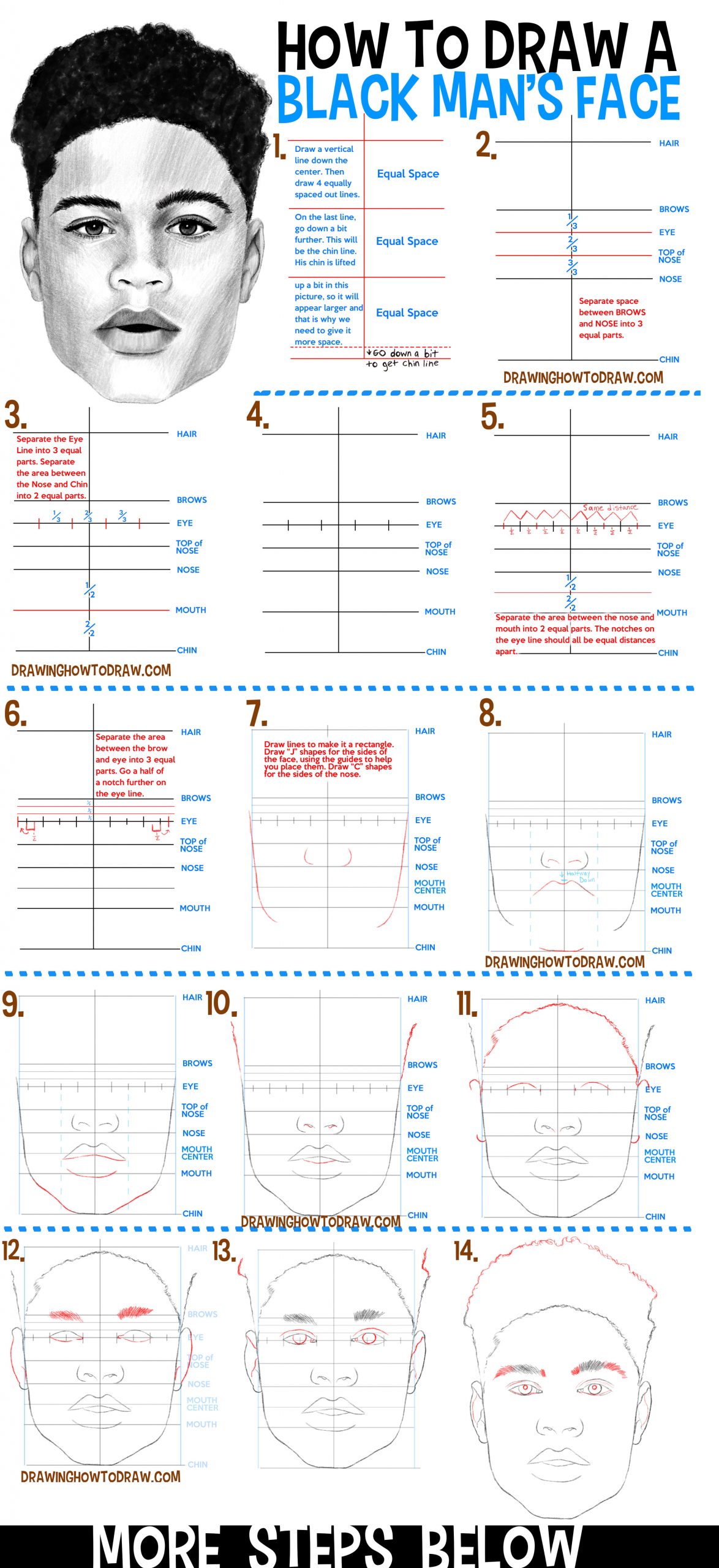 How to Draw a Black Man’s Face From The Front View Easy Step by Step Drawing Tutorial