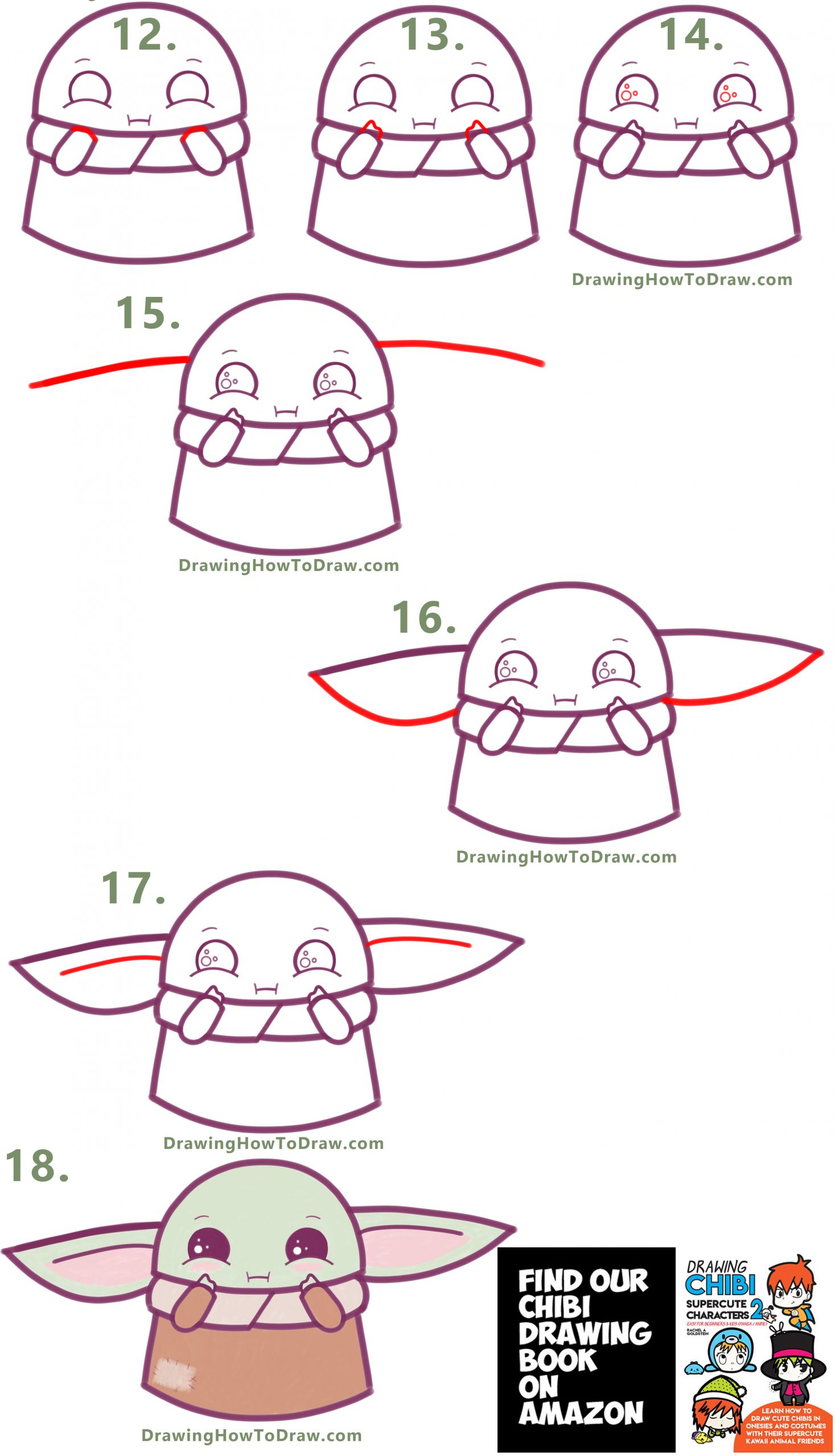 Learn How to Draw a Cute Cartoon Baby Yoda (Kawaii / Chibi) Easy Step by Step Drawing Tutorial