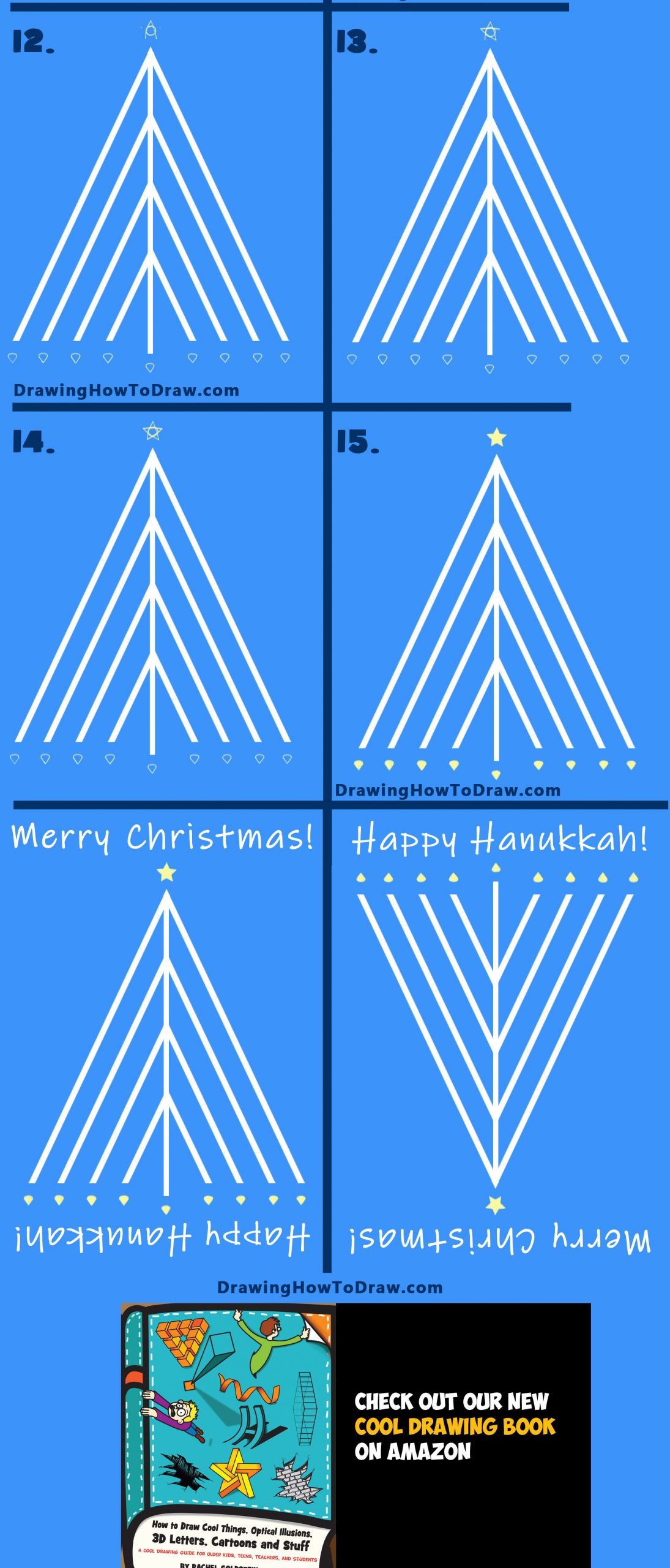 How to Draw a Hanukkah Menorah That Turns Into a Christmas Tree Greeting Card Design