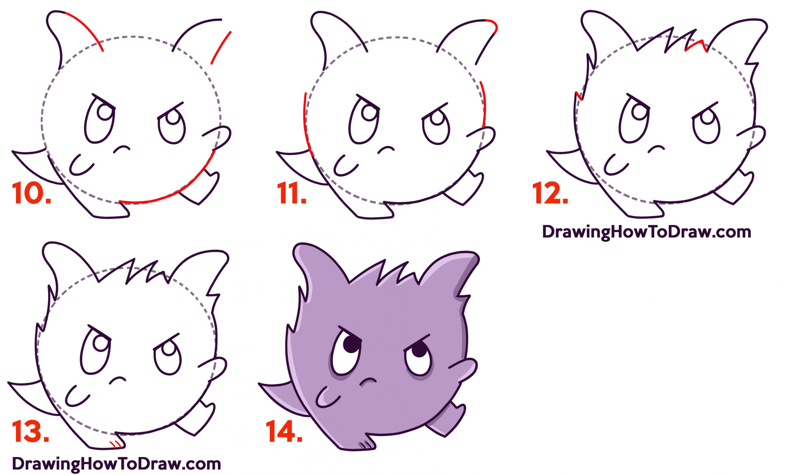 How to Draw a Cute / Kawaii / Chibi Gengar from Pokemon Easy Step by Step Drawing Tutorial for Kids