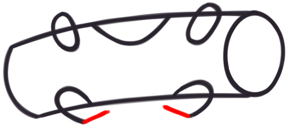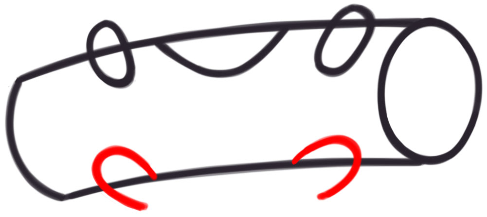 Start drawing Calcifer’s feet. Draw sideways “U” shapes.