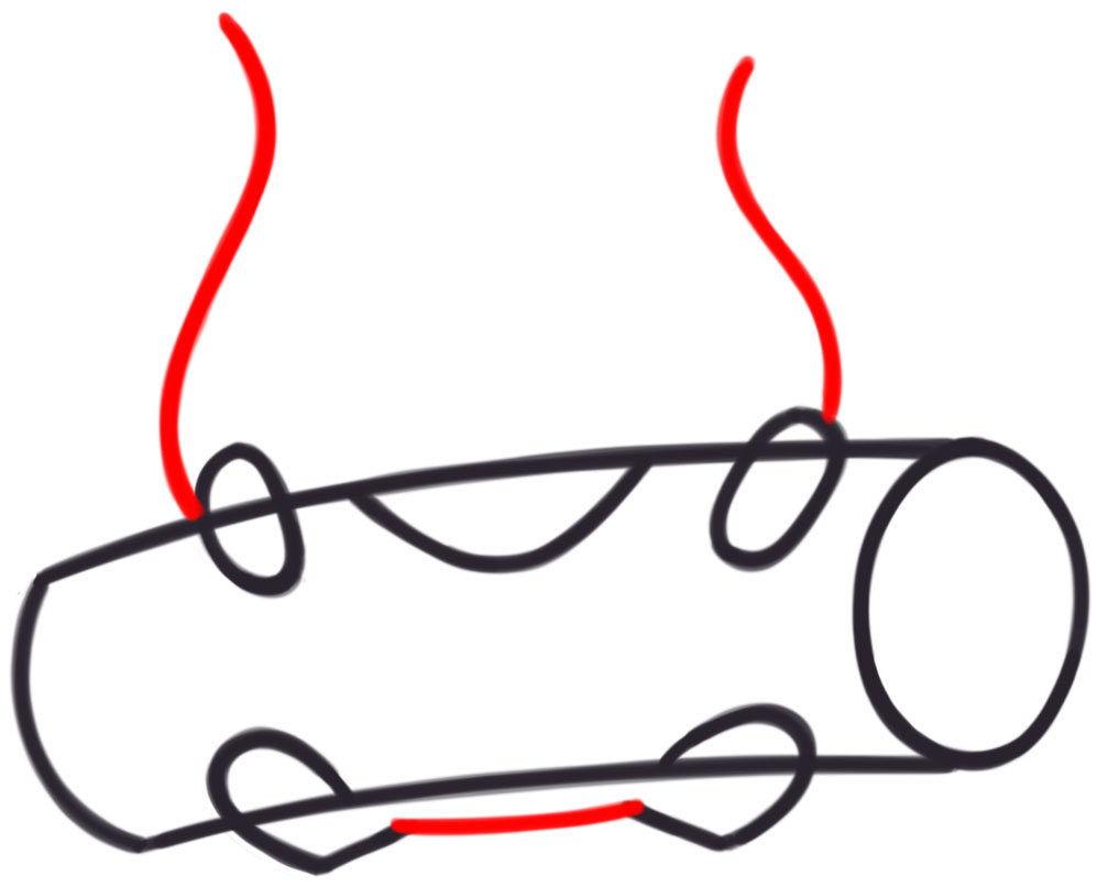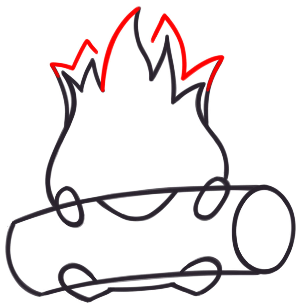 Draw 2 curved lines and one “S”-like shape for the flames.
