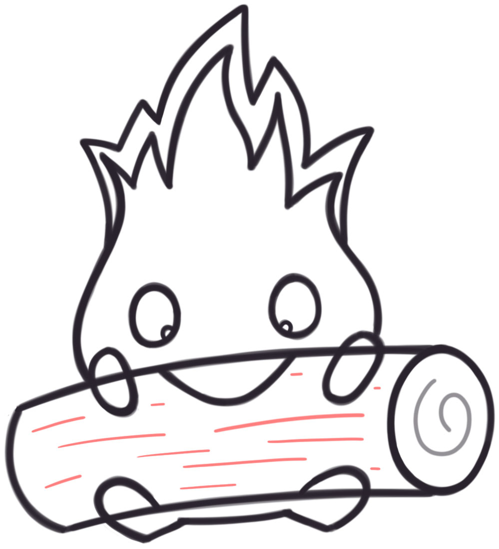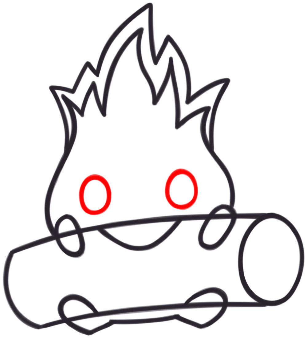 How to Draw Calcifer Eating a Log (Cute Kawaii) from Howl’s Moving Castle Easy Step by Step Drawing Tutorial