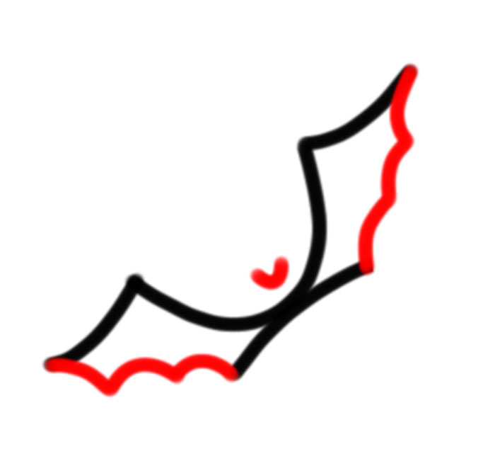 Draw wavy lines on both sides of the bat. Like #3 shapes that have one more hump. Draw a “U” shape in middle.