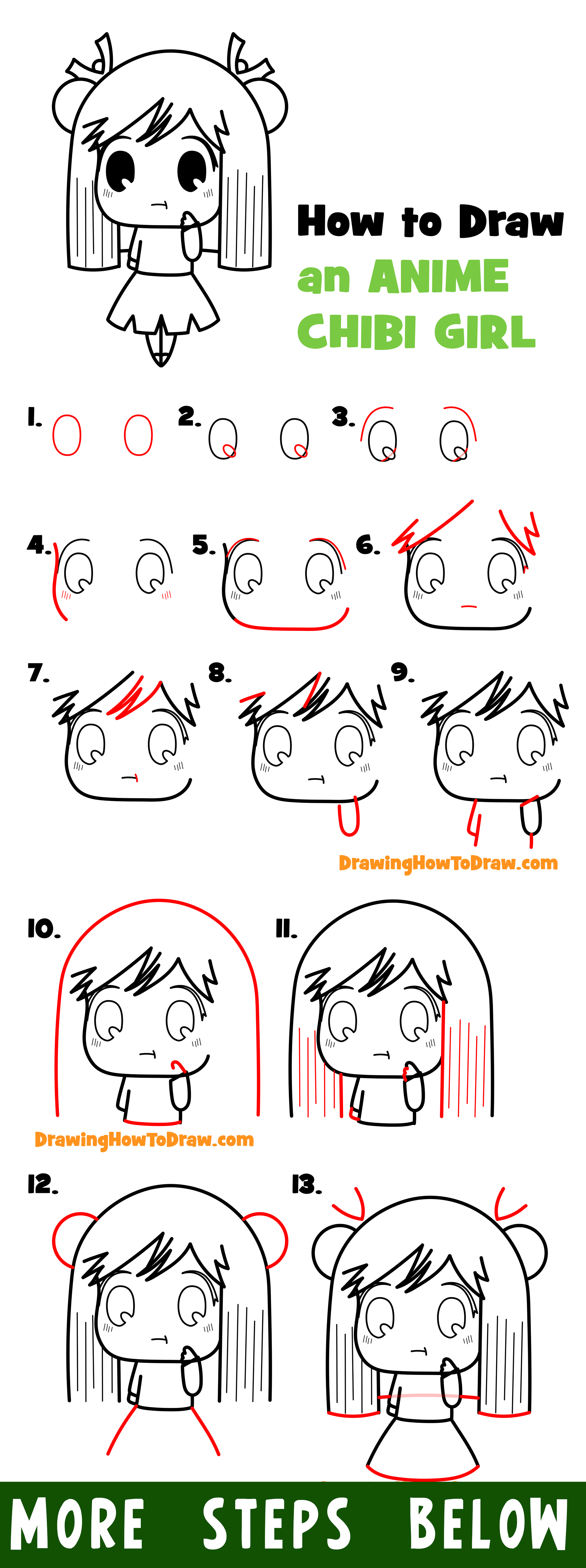 Today I’ll show you how to draw an Anime girl (chibi girl) wearing bows in her hair, wearing buns, and a schoolgirl skirt. I will guide you through drawing this anime girl with simple steps found below. Have fun drawing her!