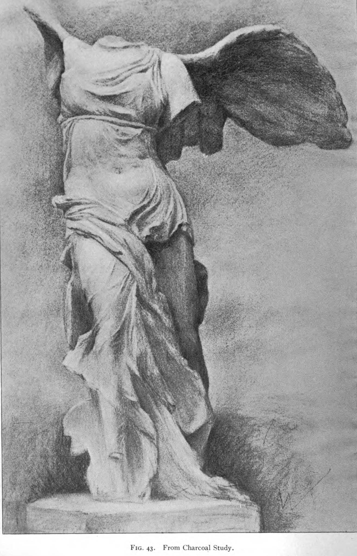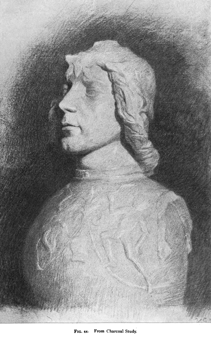 After this study of still life which enables the student to see form and values, he may draw from the antique such subjects as Figs. 43 and 44 ; after this work, he may draw from life; and finally he may study painting, beginning with still life which will prepare for the painting of the head and figure.