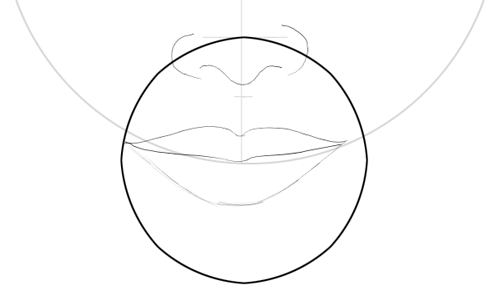 Now draw the lip lines around the circles. Notice how far out to draw the lips.