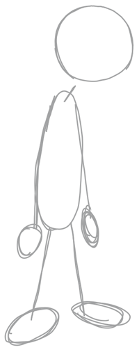 Draw a curved line for his chin. Draw a letter ‘J’ like shape for his nose….and his mouth is made up of an ‘s’ and a backwards letter ‘s’.