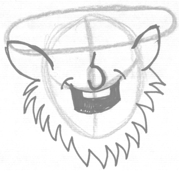 Draw leaf-shape ears…draw an oval nose….draw teeth…and draw a line down from the top of the mouth.