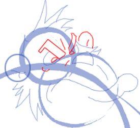 Draw the club…and start drawing the rest of the feet and hands. Draw a letter ‘T’ shape for the part between the thumb and fingers, on the right hand.