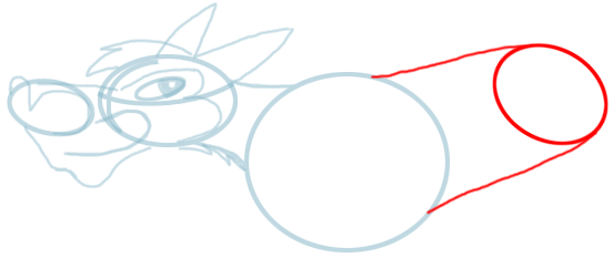Draw an oval to the right of the body oval – connect them with slanted lines.