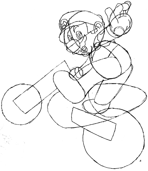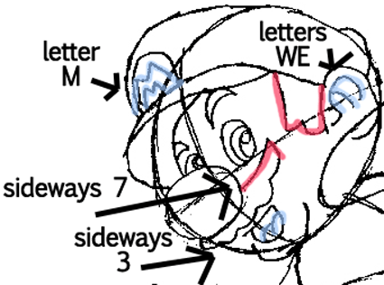Now, draw Mario’s facial features. Use letters and numbers to help you draw his features.