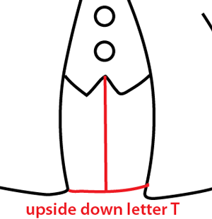 Draw an upside down letter ‘T’ shape for his pants.