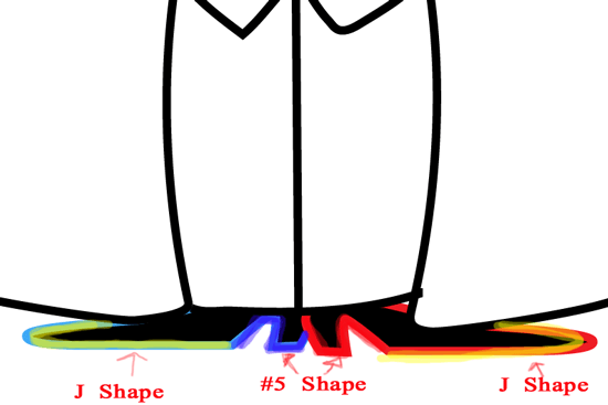 Now draw his shoes, two letter ‘J’ shapes and two number ‘5’ shapes as shown above.