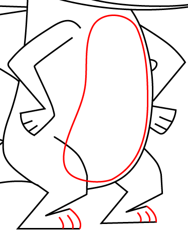 Complete the feet by drawing curved lines for the toes. Then draw a long oval shape for the belly.