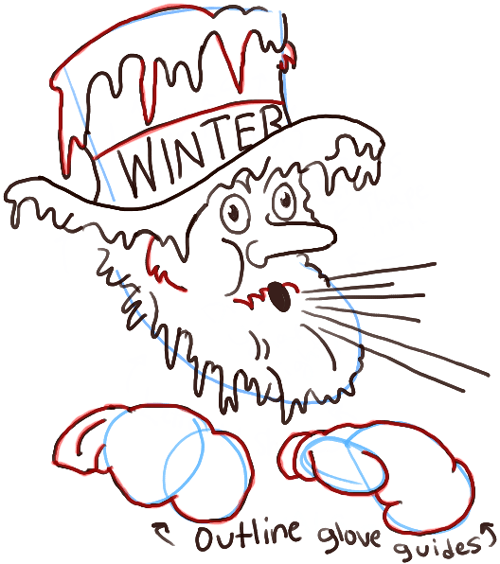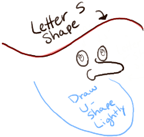 – Draw a sideways letter ‘s’ shape for the rim of the hat.