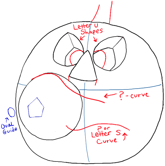 – Draw sideways letter ‘s’ or ?-like shapes around the baby pumpkin (this is the big pumpkin’s mouth shutting around the baby pumpkin).