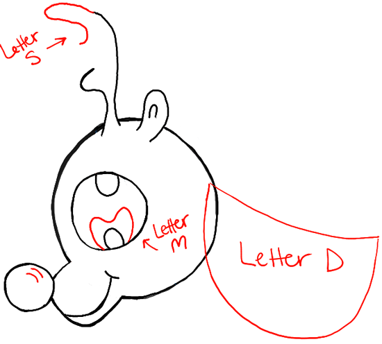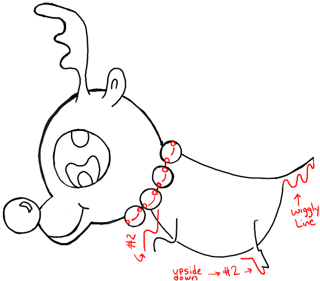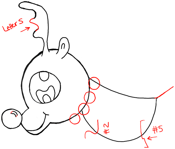 – Draw a letter ‘S’ and a curved line to start out the antler.