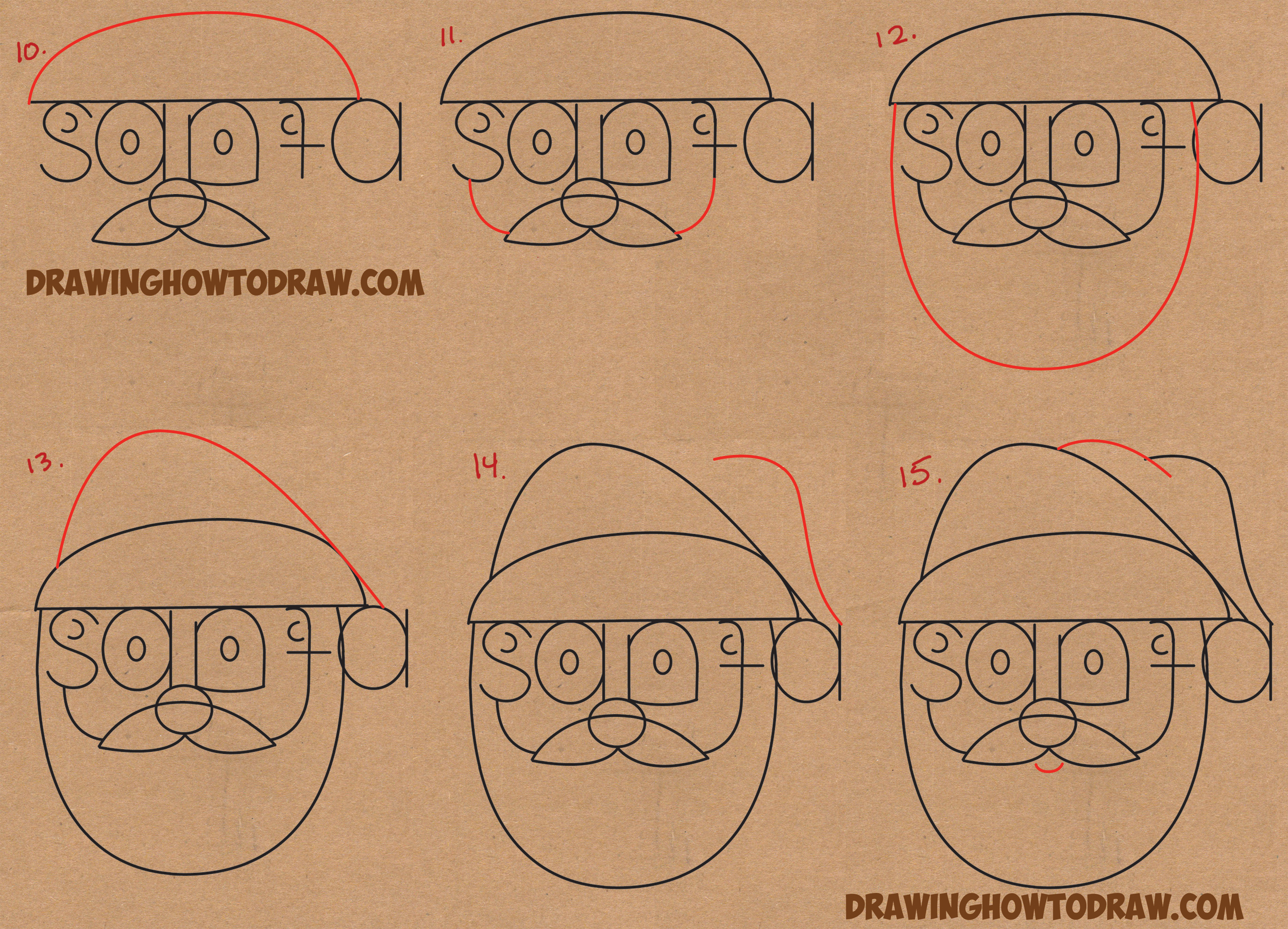 Learn How to Draw Cartoon Santa Claus Word Toon Simple Steps Drawing Lesson for Kids on Christmas