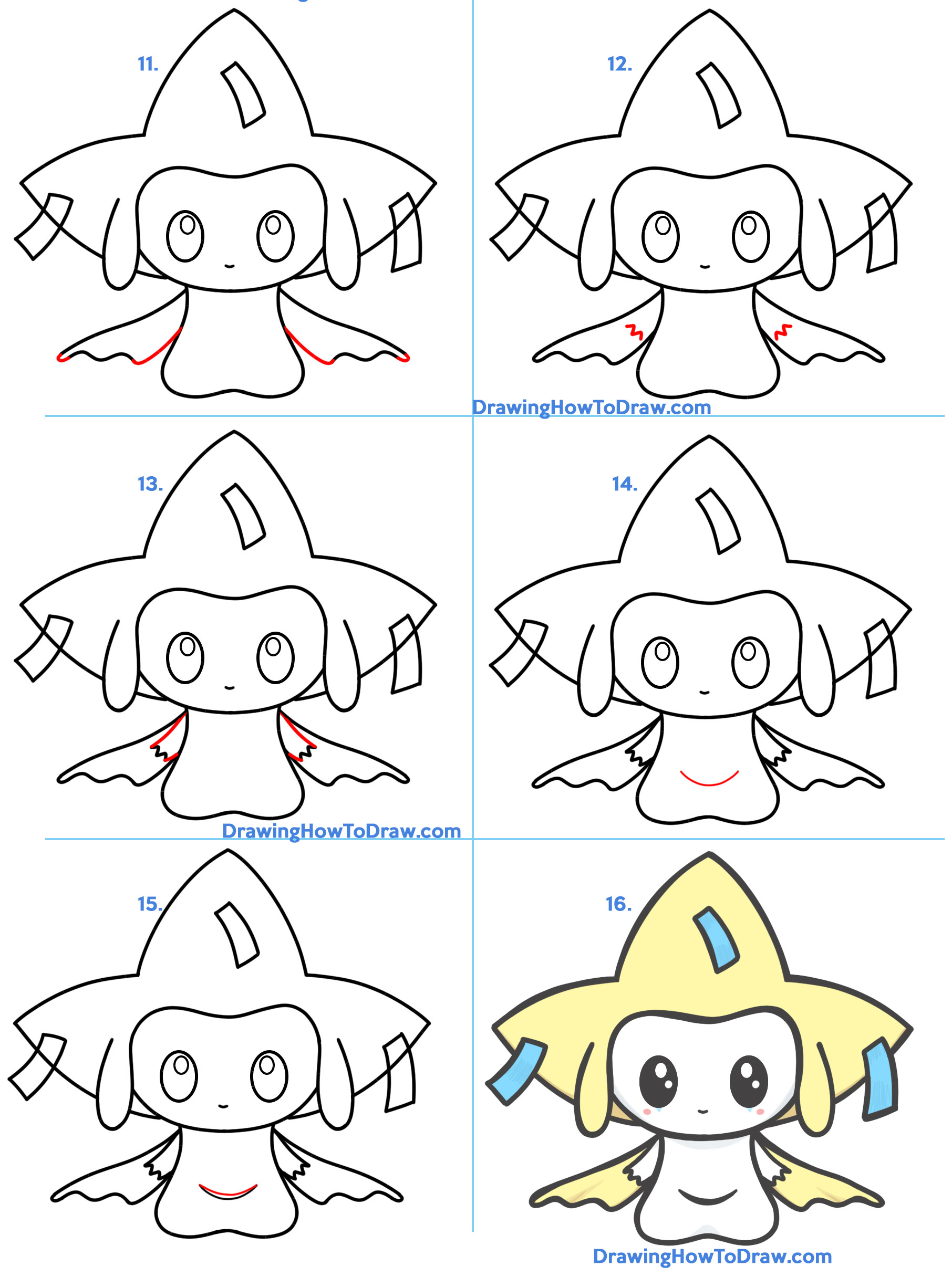 Learn How to Draw a Cute / Kawaii / Chibi Jirachi from Pokemon Easy Step by Step Drawing Tutorial for Kids